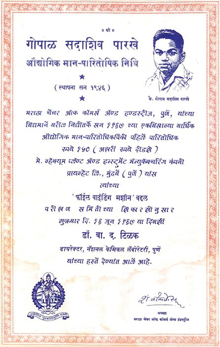 - Import Substitution Award for Foil Winding Machine 1976