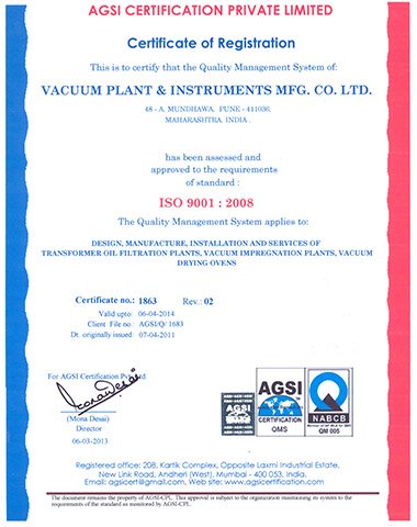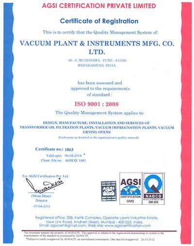 Vacuum Plant & Instruments Certificates