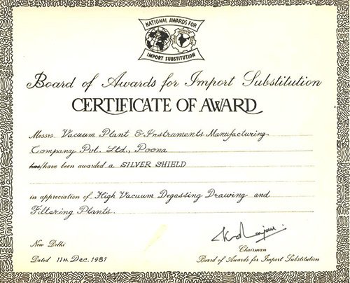 Backed by our experienced workforce and a well facilitated research and development unit, we have revolutionized the field of Vacuum Technology. The range of Insulating Oil Filtration Plants, Vacuum Pressure Impregnating Plants, Resin Casting Plants and Vacuum Drying Plants offered by us is appreciated by clients across the globe. Owing to our tenacious efforts, we have been awarded with the national award for import substitution and new inventions. Some of our awards include: