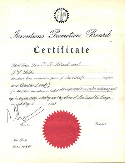 - Invention Board of India Award 1967